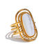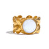 Elevate your party look with this trendy geometric ring, crafted with natural shell inlays and a durable stainless steel base finished in radiant 18K gold plating. Its sleek, modern design adds a chic touch to any outfit, perfect for those who want to express their unique style with confidence.